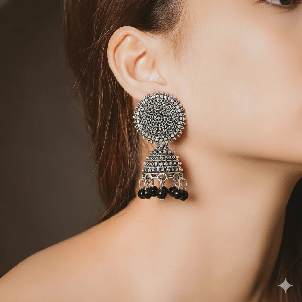 The premium silver oxidised finish enhances every detail, giving the earrings a rich, handcrafted look. Despite their bold appearance, the earrings are lightweight and comfortable, making them suitable for parties, festive wear, office styling and casual outings.