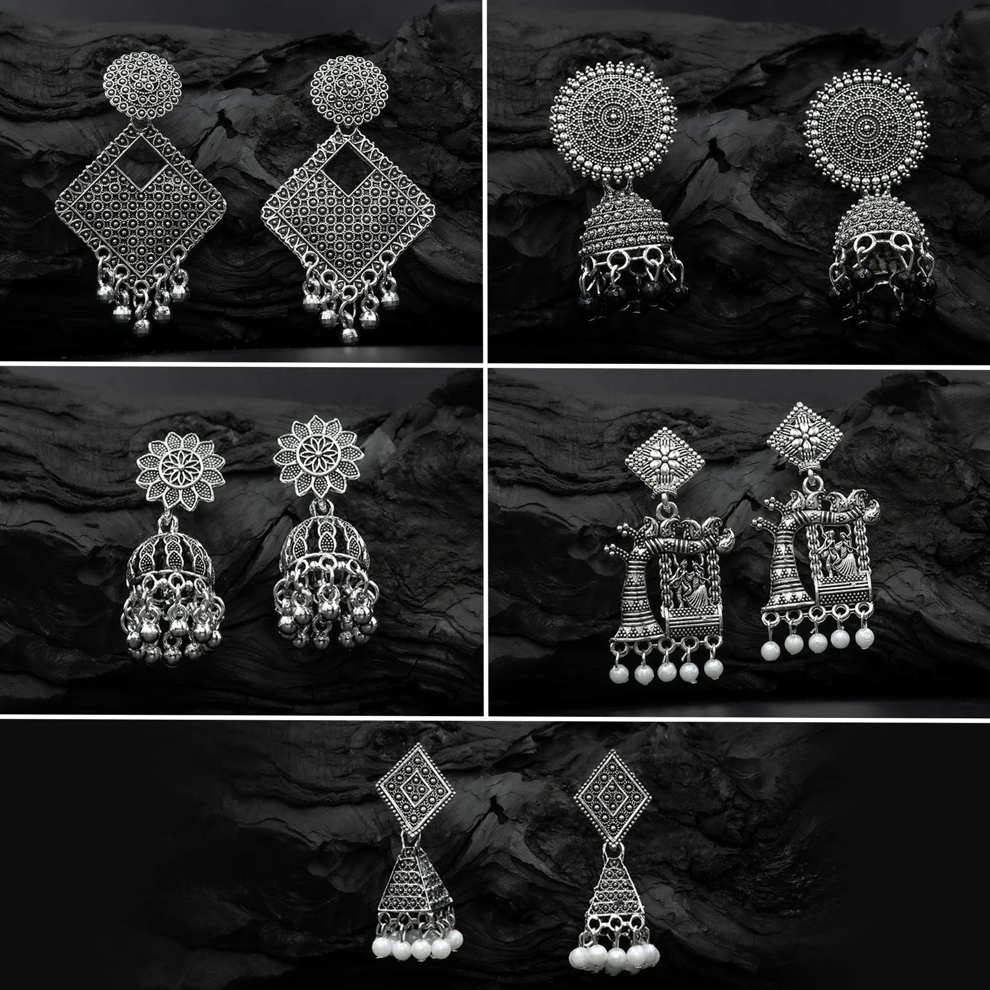 Designer Oxidised Earrings Combo Set (5 Pairs) | Statement