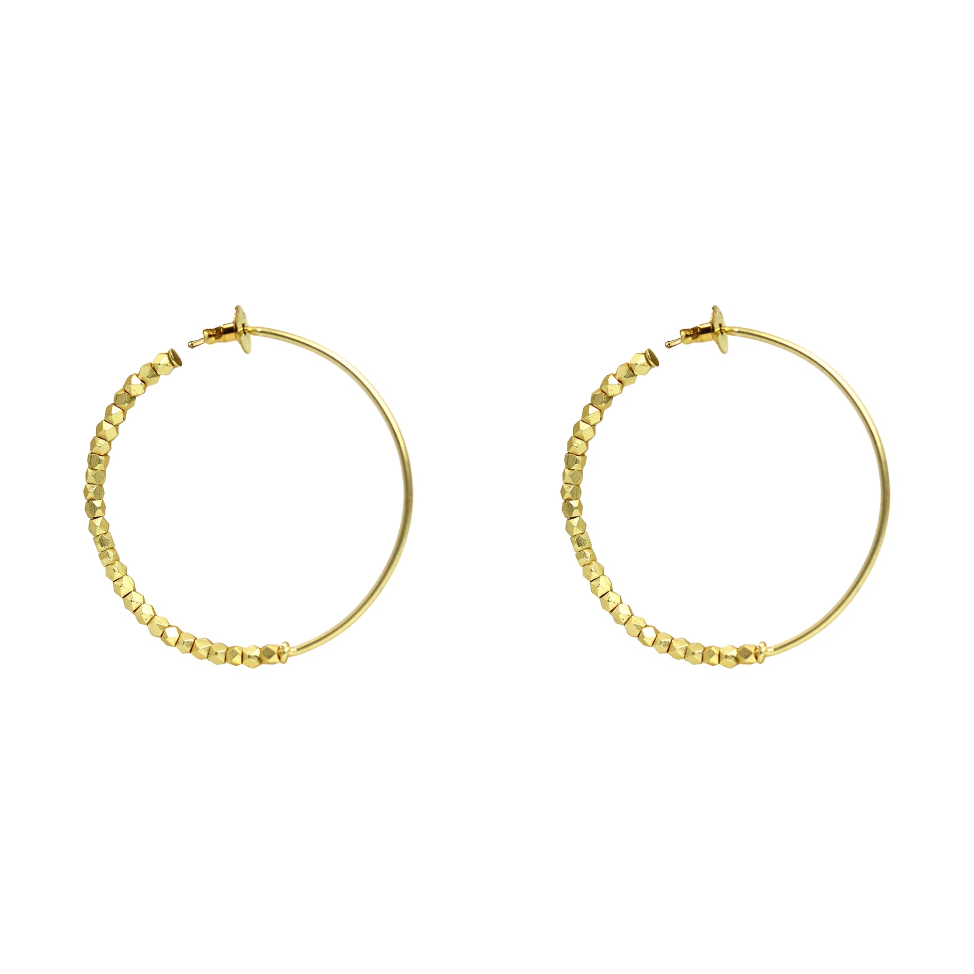 Crafted from premium quality brass and finished in a rich gold polish, these earrings are nickel-free, comfortable, and anti-tarnish – ideal for daily wear or festive styling. The textured beaded accents lend a touch of bold artistry to the classic hoop silhouette, making them a versatile must-have in your jewelry box.