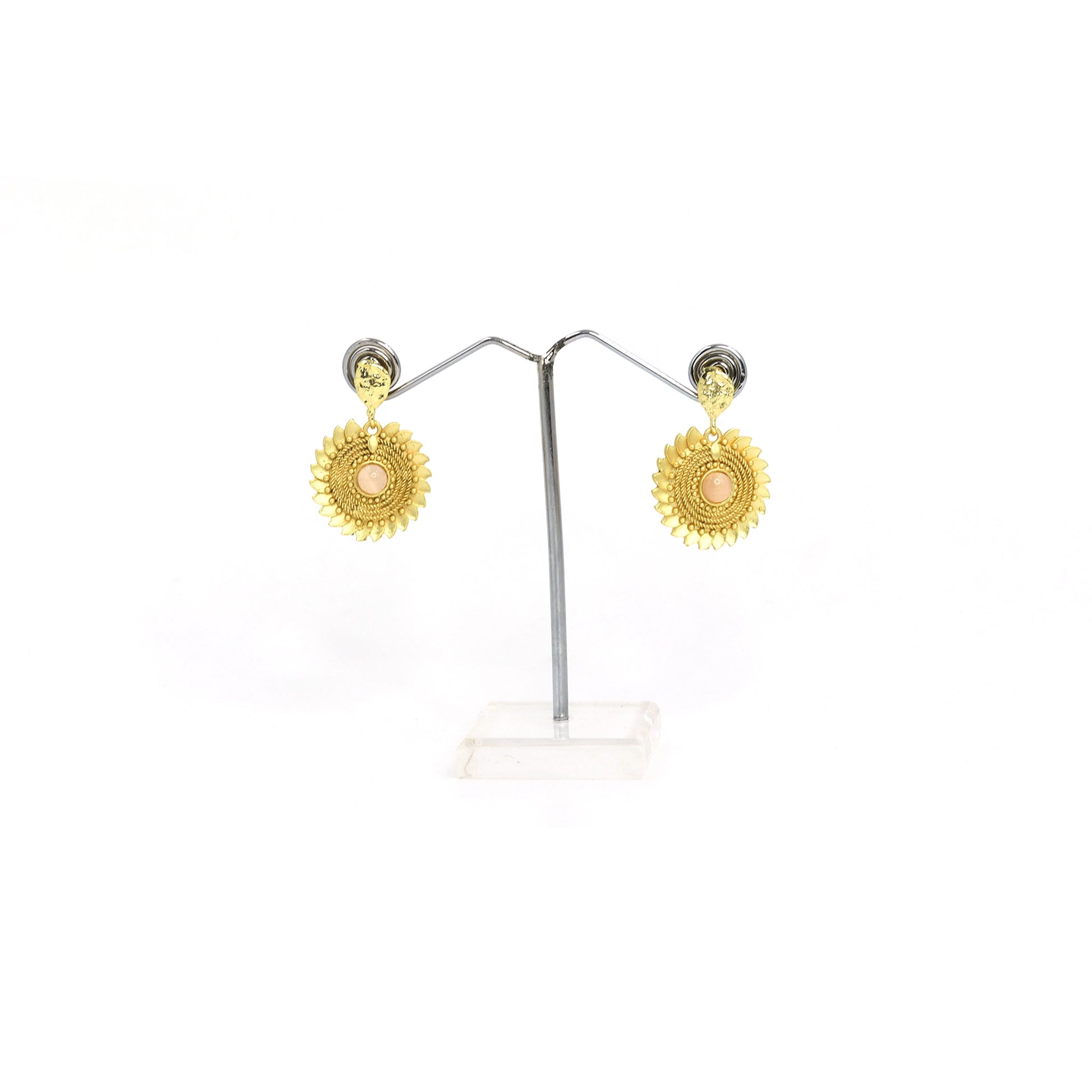 Divamas Grand Gold-Plated Round Drop Earrings with Center Stone Pinkish-Brown – Luxury Ethnic Designer Jewelry