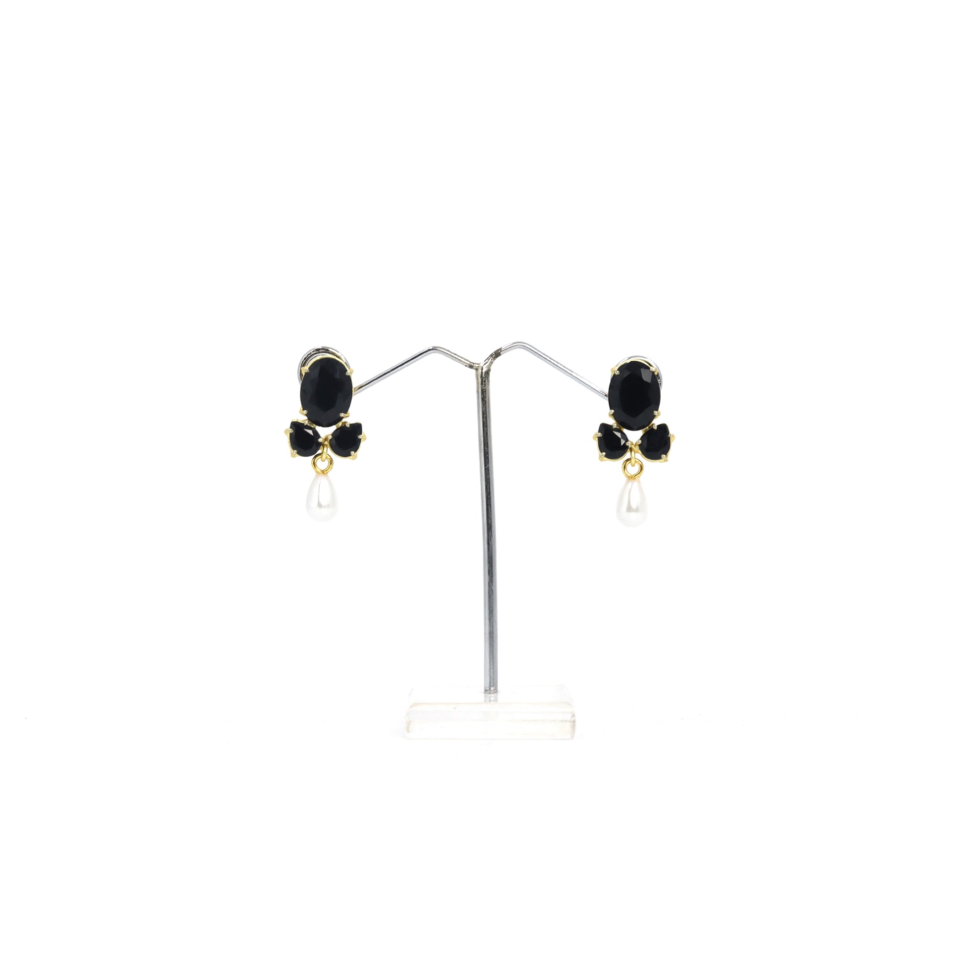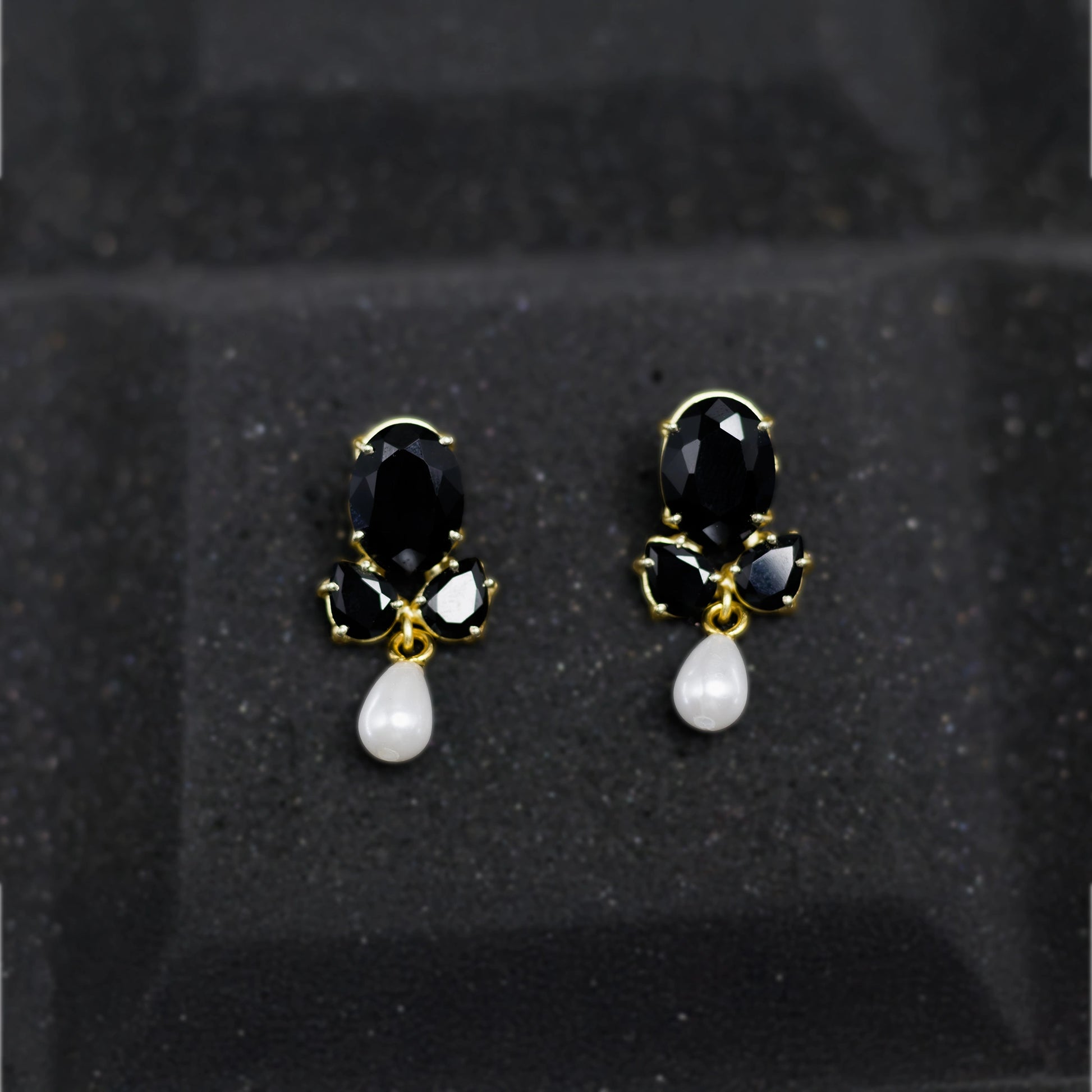 DIVAMAS Luxurious Black Raw Stone Earrings with Pearl Drop