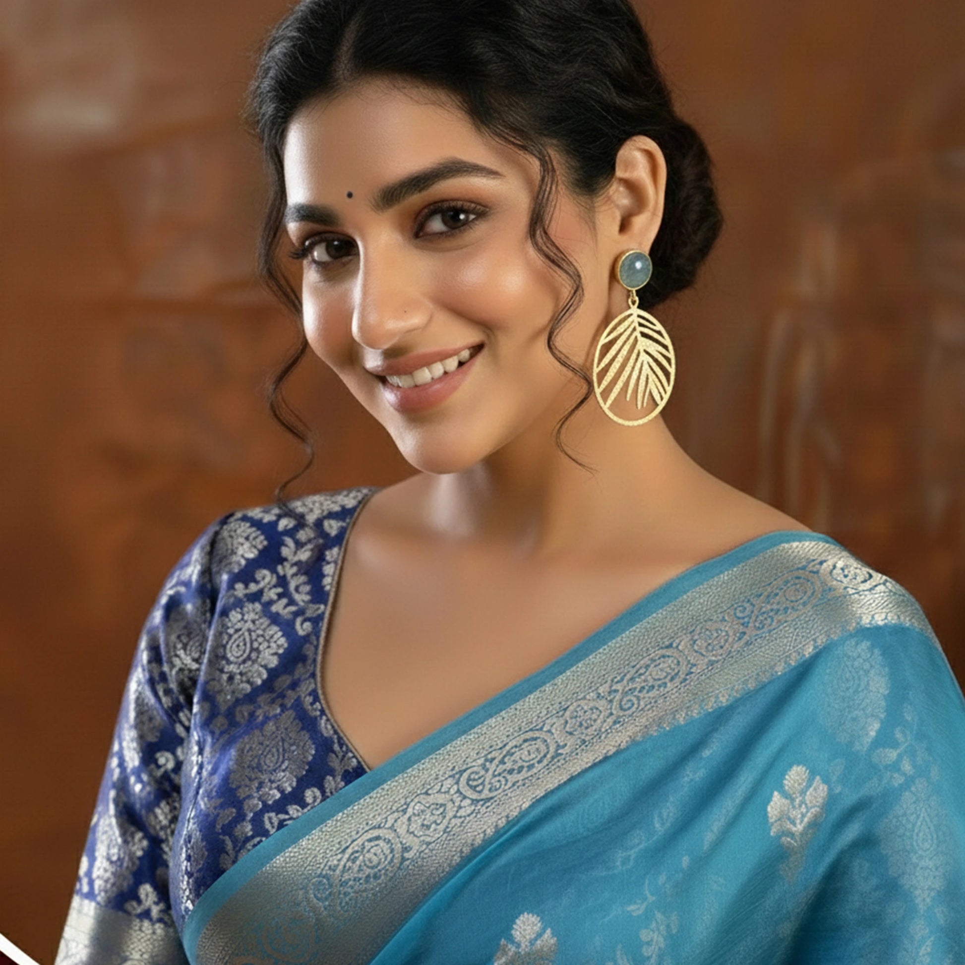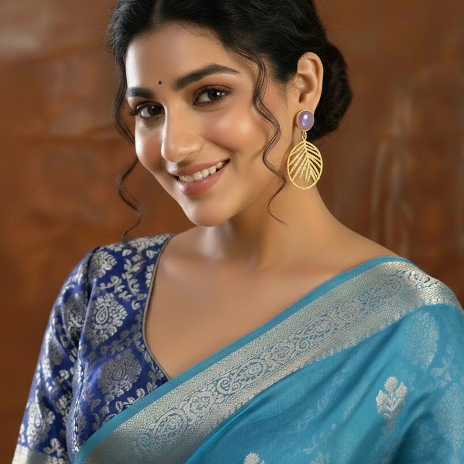 Elevate your accessory game with the DIVAMAS Monalisa Stone Leaf Dangle Earrings – a fusion of contemporary design and nature-inspired charm. These statement earrings feature a textured golden leaf motif in a circular design, hanging from a glossy Monalisa stone stud, available in Aqua Blue, Black, and Pink. Lightweight and easy to pair with casual, festive, or ethnic wear, these earrings add effortless sophistication to any outfit.